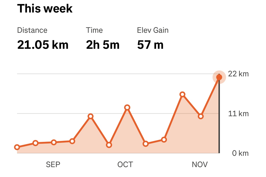 I starten har jeg ikke ønsket å teste form ved hardere løp de første månedene så jeg skrudde bare gradvis opp fart ettersom puls sank og RPE ble lav på samme intensitet.