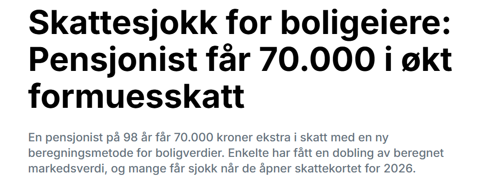 Syns dere synd på vedkommende som har hus til 23 mill og 3 utleieboliger og må betale litt formueskatt?