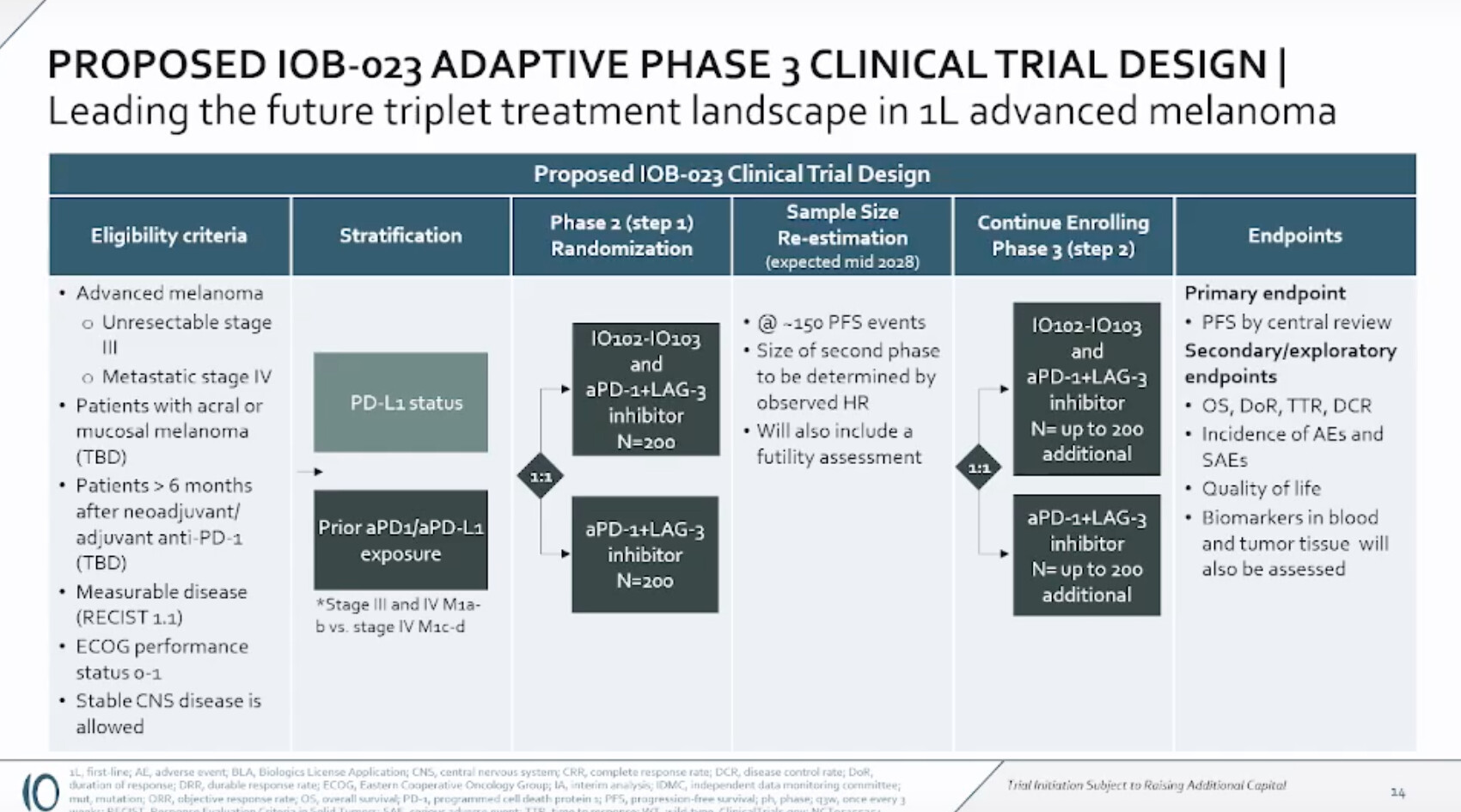 Den planlegges globalt og med Opdualag. Det viser seg nemlig at det har pågått en “investigator” studie parallelt med fase 3 med Opdualag(!) hvor man allerede har sett en effekt (lav n såe…)
