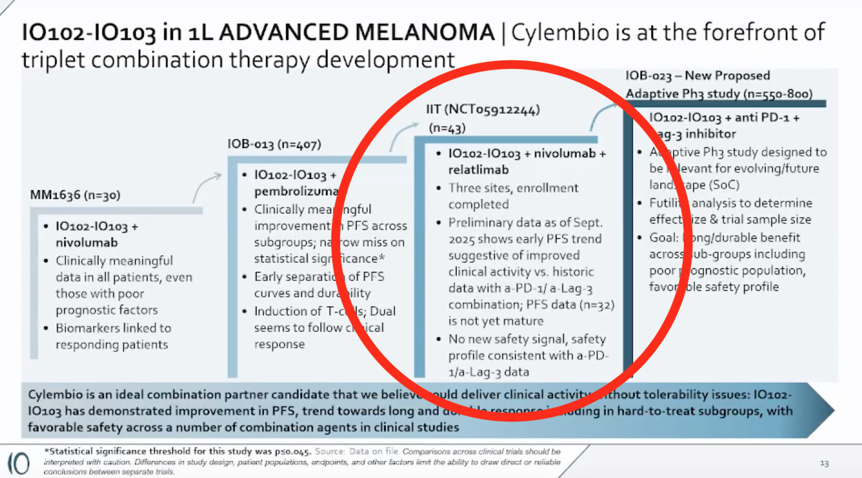"this narrow miss on significance is not the end for us, is the beginning, we will start additional phase 3 in melanoma and other indications”.