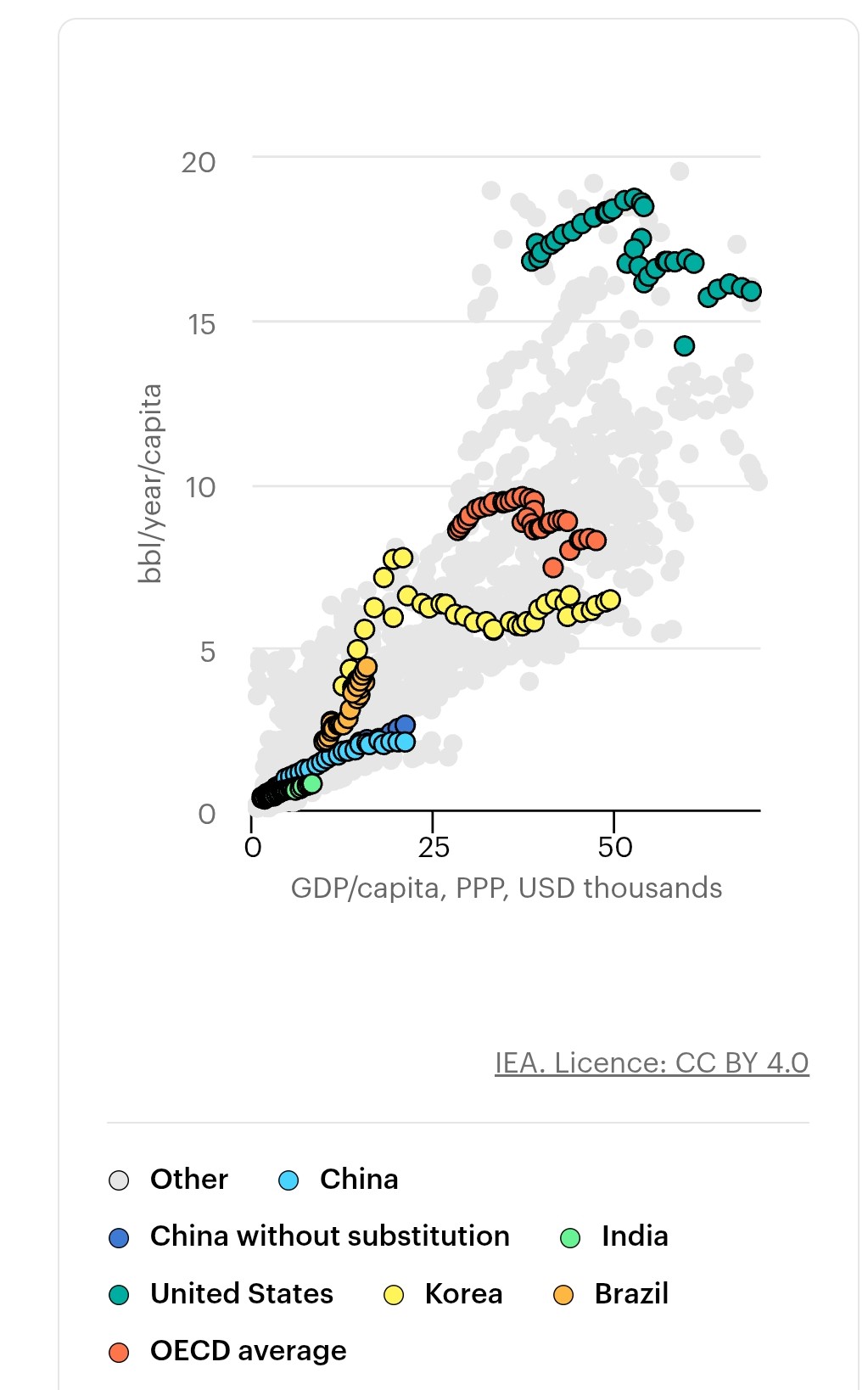 Edit, fossil fuel per capita blir vel riktigere, USA litt mer enn dobbelte av Europa og Kina