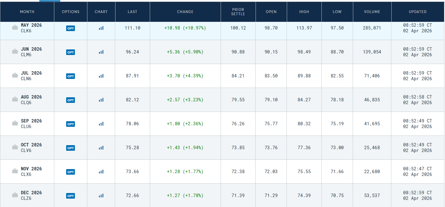 Jeg lurte bare på hvordan futures ser ut nå basert på den eksplosjonen vi ser i WTI. Hvor finner du de?