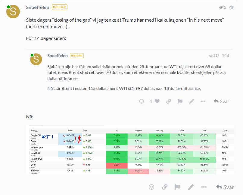 Som du ser så påpekte jeg Trumps utfordring for noen timer siden, dyr olje, og dyr bensin, er ikke optimalt for USA, ei eller Trump heller.