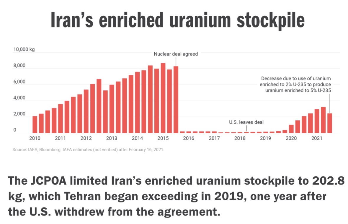 samarbeidsvillige og det landet i verden som hadde hatt flest inspeksjoner. Vedlegger bilde som viser hvor effektiv avtalen fikk bukt på Irans lagre av anriket uran.