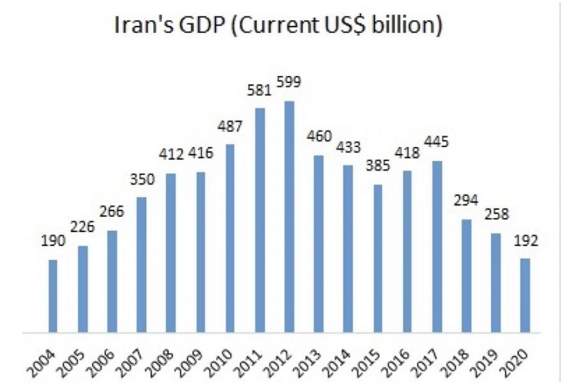 Irans BNP ble halvert