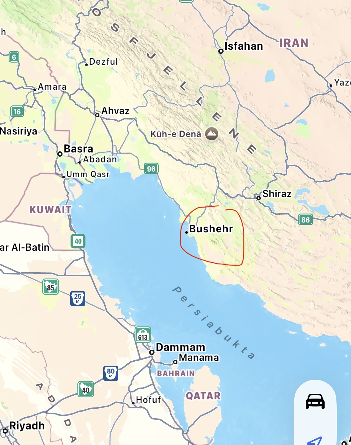 Neida, tro de fleste og spesielt du veit at nukes er idiotisk å bruke spesielt her, men jeg ønsket bare å poengtere Bushehr siden israelerne har bombet der ved minst 2 ganger nå….noe som har bekymret land som Qatar, forståelig nok grunnet atomanlegget ligger i bukta som også er kilden for drikkevann.