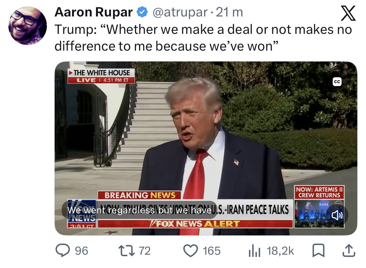 Så hva er det han ønsker? Et commitment ala JCPOA på at Iran ikke vil anrike uran opp til atomvåpen? Fordi det var jo det (og mer til) som lå på bordet dagen før USA/Israel angrep Iran i år. I følge den omanske utenriksministeren så sa han at Iran hadde akseptert null anrikning av uran og USA dermed kunne avblåse krigen.
