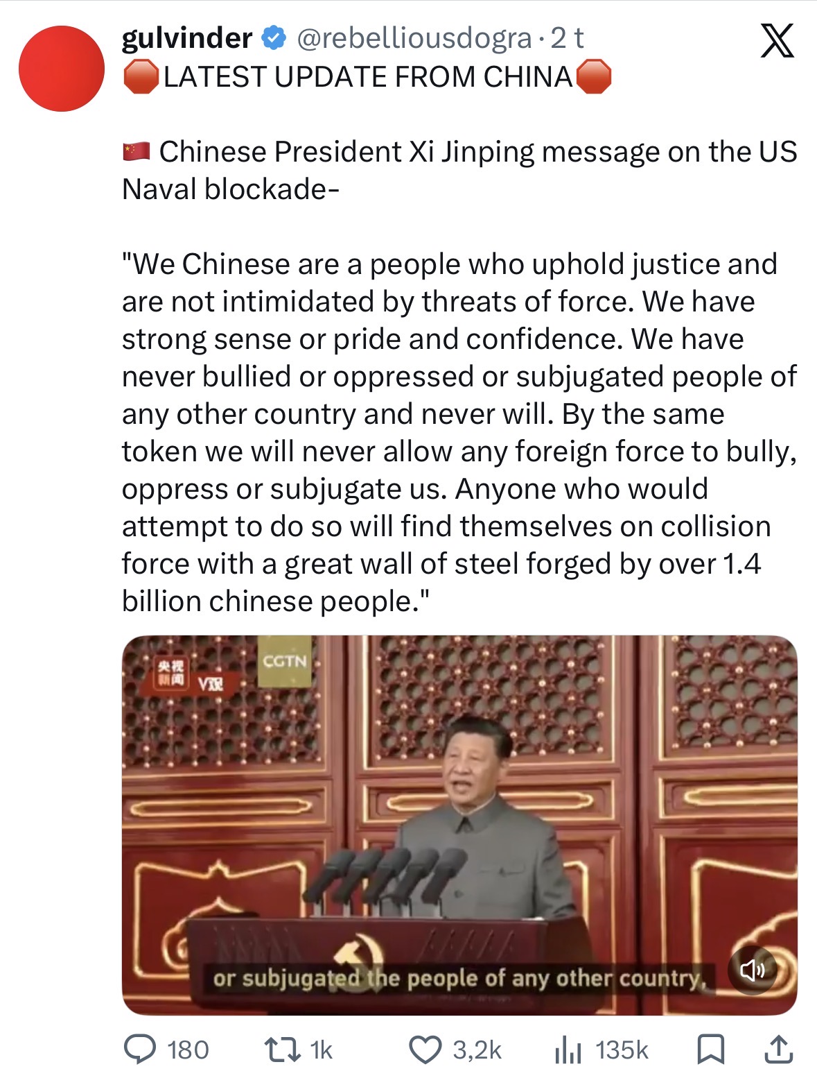 Kina har i det minste vært godt forberedt. Og hvis Trump syntes at Houtiene var vanskelig å få hass på (slik som Hamas/Hisbollah er for Israel) og Iran er en nøtt, så er det å direkte yppe med Kina kanskje ikke det beste trekket.