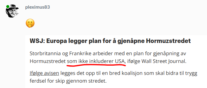 Har ikke særlig trua på at USA klarer å gjennomføre denne blokaden, tipper det er falske trusler ala taco, men la oss se.