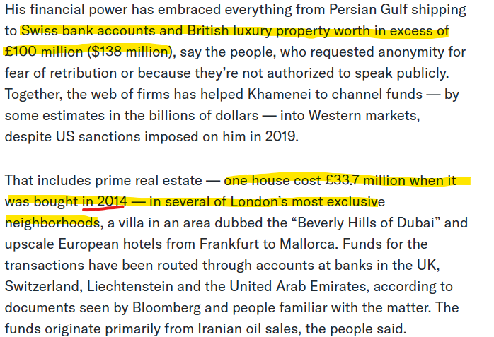 Hvorfor var dette litte granne interessante nyheter / lov å skrive om, når ingen hadde hørt om Mojtaba Khamenei, men nå er det totalt uinteressant, og ingen skriver om at Mojtaba tydligvis har masse ting gående i sveitsiske banker og eiendom i London. Hva slags forbindelser snakker vi egentlig? Hvorfor er det så koselig å være Mullah i London?