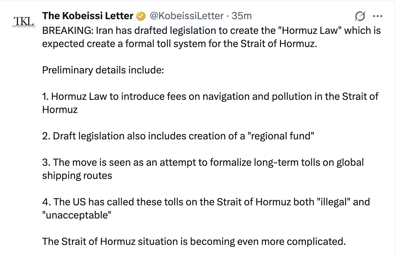 Alternativet med toll til Iran, som kanskje og kunne løst rødehavet situasjonen er nok en langt billigere og mindre smertefull opplevelse for verden enn en hard cutoff av 10-15% av verdens olje og gass tilførsel.