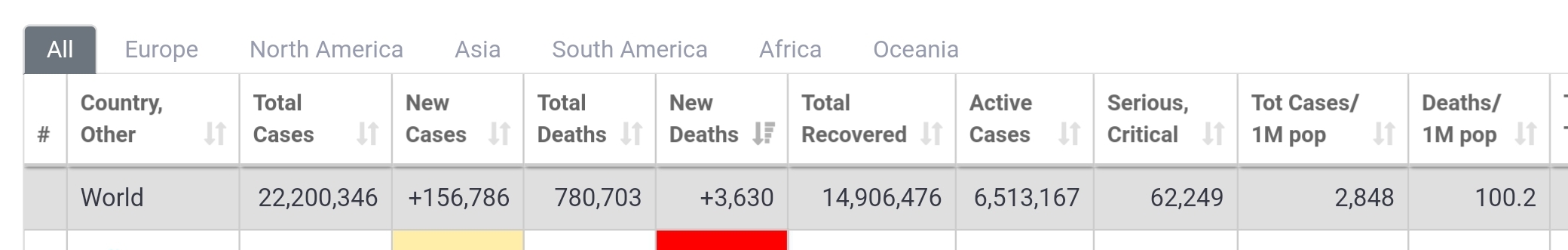 Antall registrerte døde av COVID-19 passerte i dag 1/10000 av jordens befolkning. Eller 0.01%.