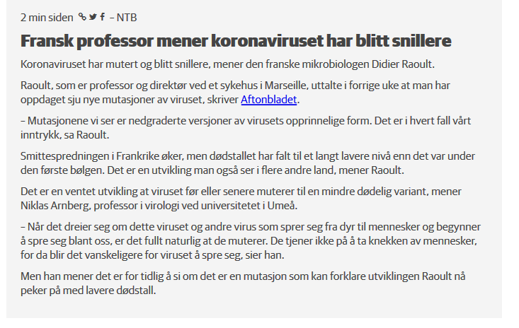 Nå som Espen Rostrup Nakstad står på Dagsrevyen og sier at du kan få korona via luftbåren smitte, så er det vel på sin plass å minne om dette sitatet: