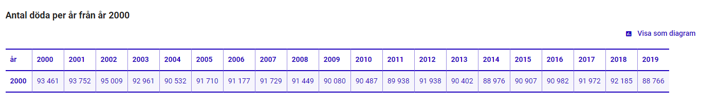 Det er totalt antall døde per år