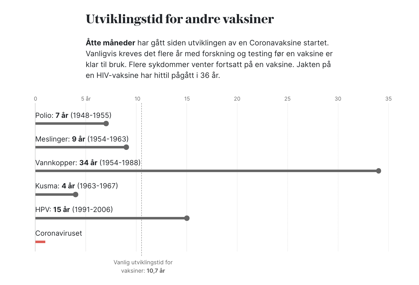 Får håpe det går fortere enn den normale utviklingstiden på 10 år, men ikke så få fort at det blir bivirkninger (hentet fra VG)