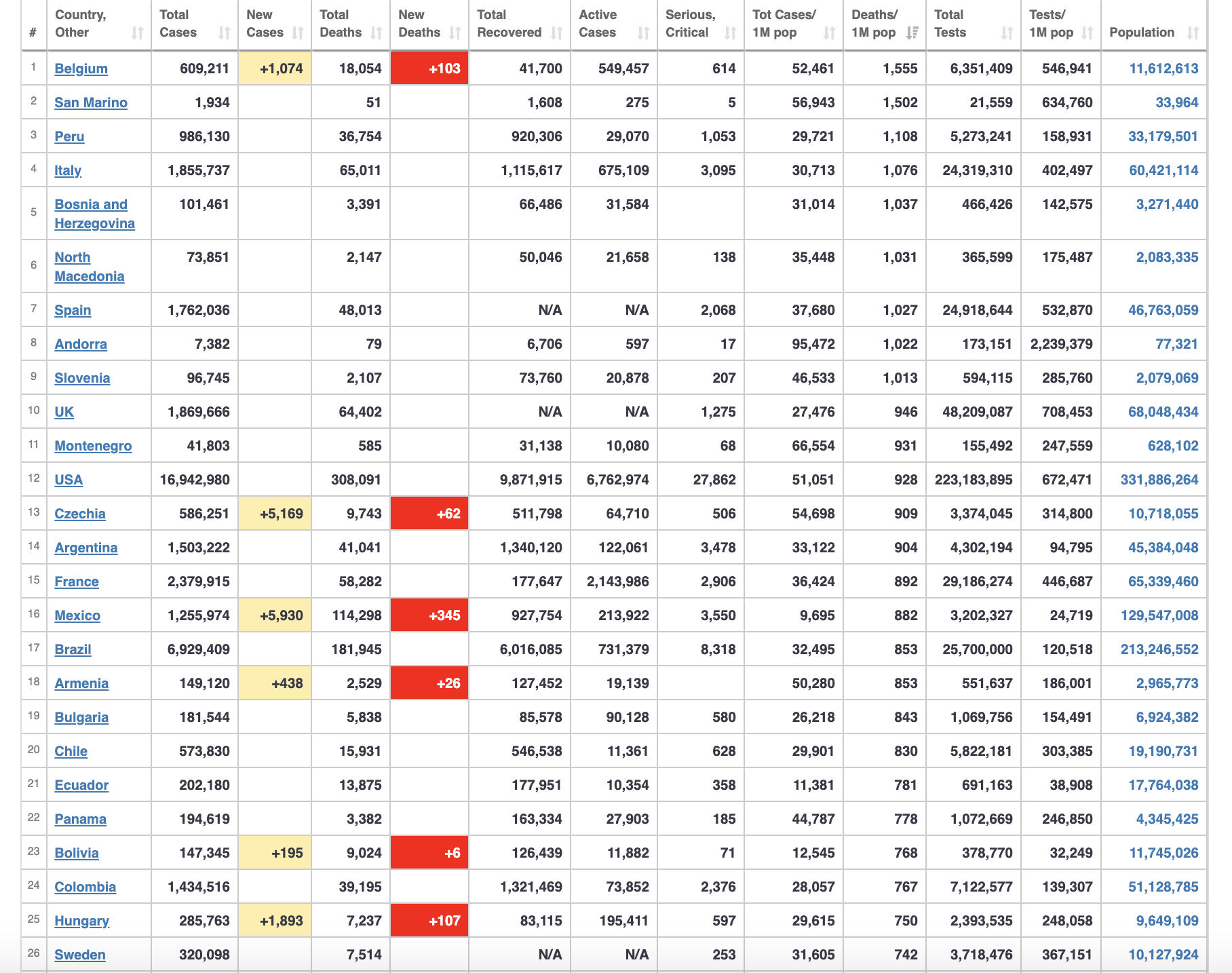 Hvorfor skal landet som nå ligger på plass 26 i verden over antall døde per 1M være hele verdens hakkekylling? Det er kanskje bedre å rette fokuset også mot de 25 andre som ligger over?