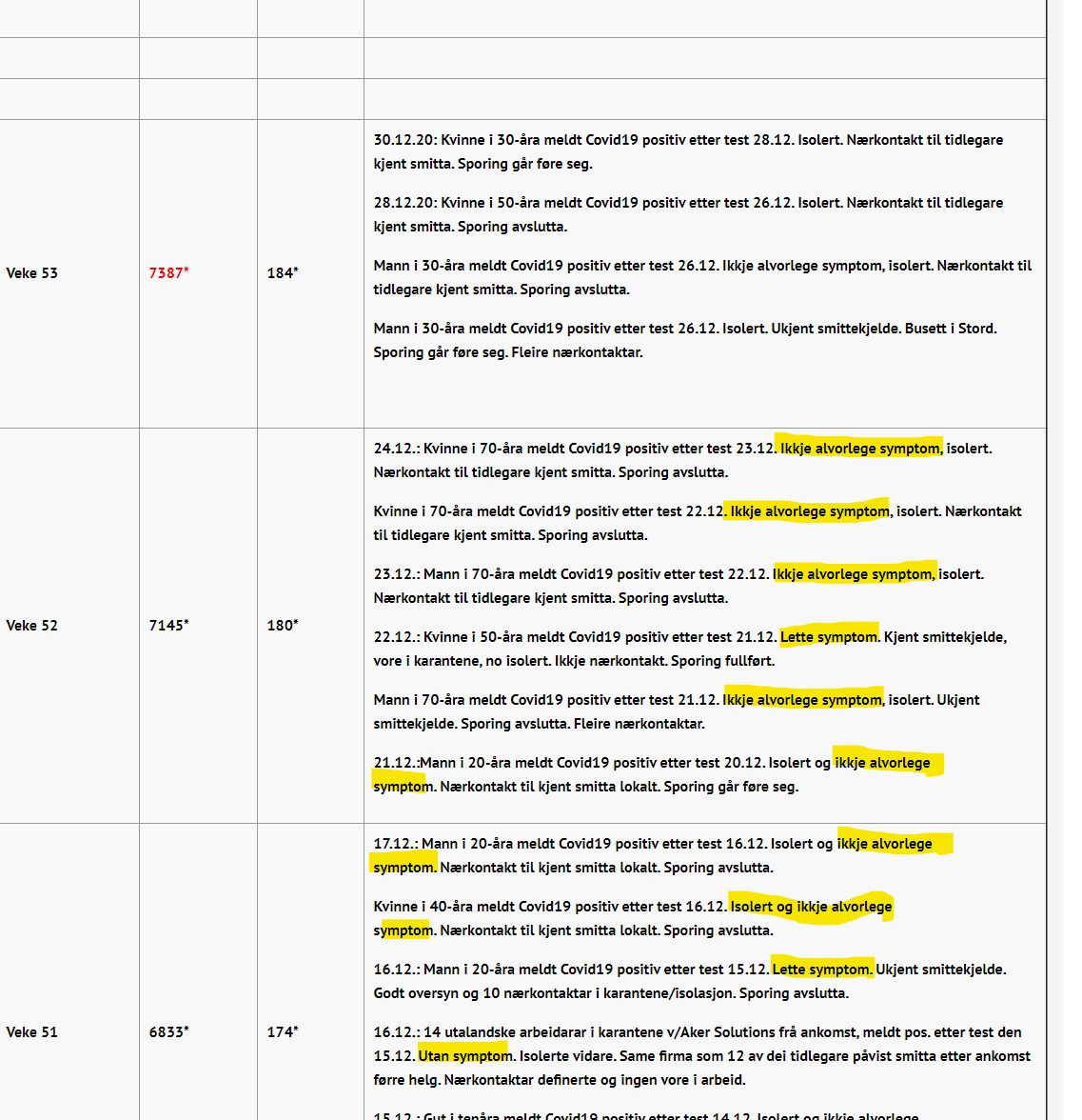 Under er et lite utsnitt over siste ukers smittesporing. Hadde jeg giddet å poste resten hadde det vært samme greiene.