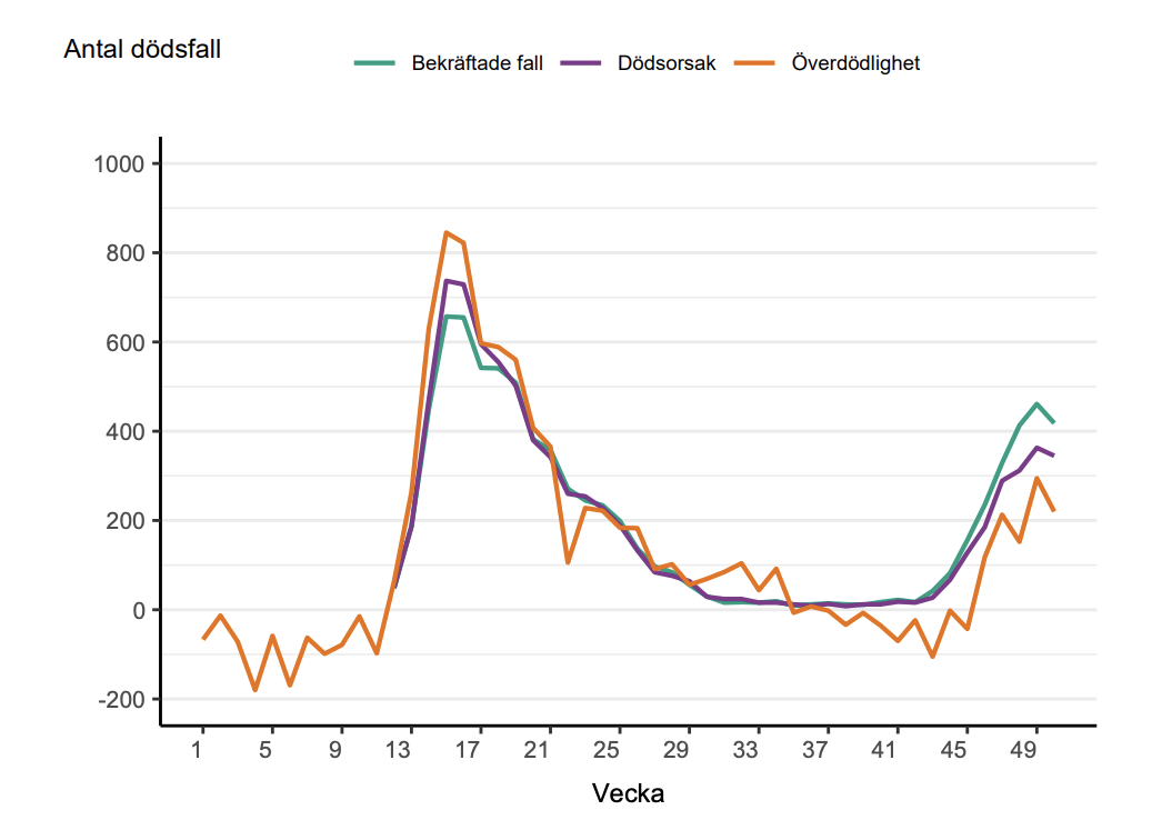 På grunn av mye testing og hvordan man registrer dødsfall i Sverige, blåses dette tallet opp om man sammenligner med våren. Med mye testing er det rett og slett mange som dør av andre ting, men som kommer med i statistikken.