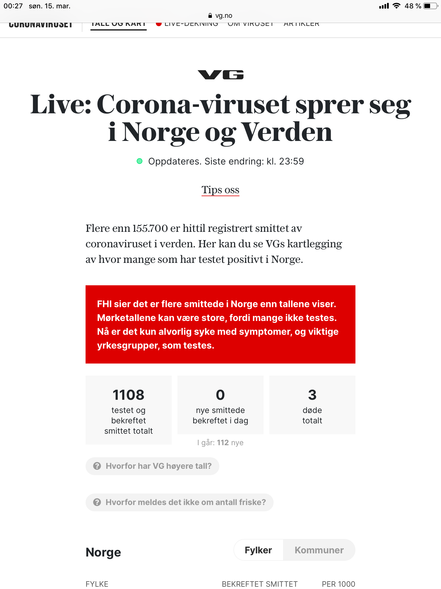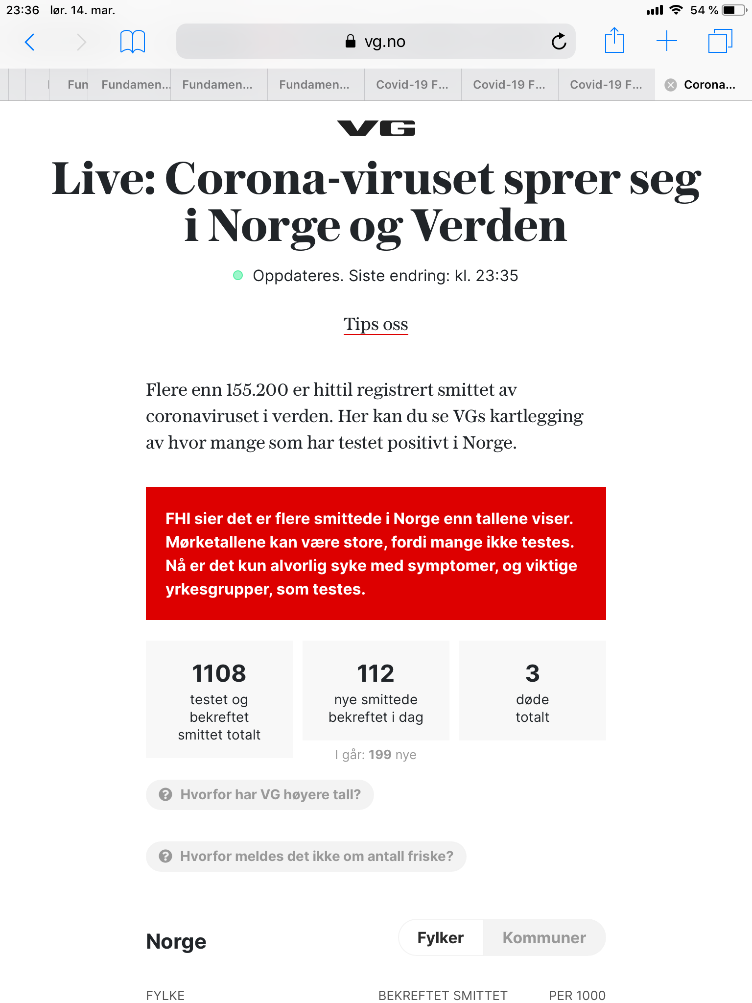 Dette endrer likevel selvfølgelig på prognosen for 24.mars som jeg altså antar er dagen vi kan begynne å forvente utflating i Norge. Ville fortsatt ikke booket påskeferie i Spania.