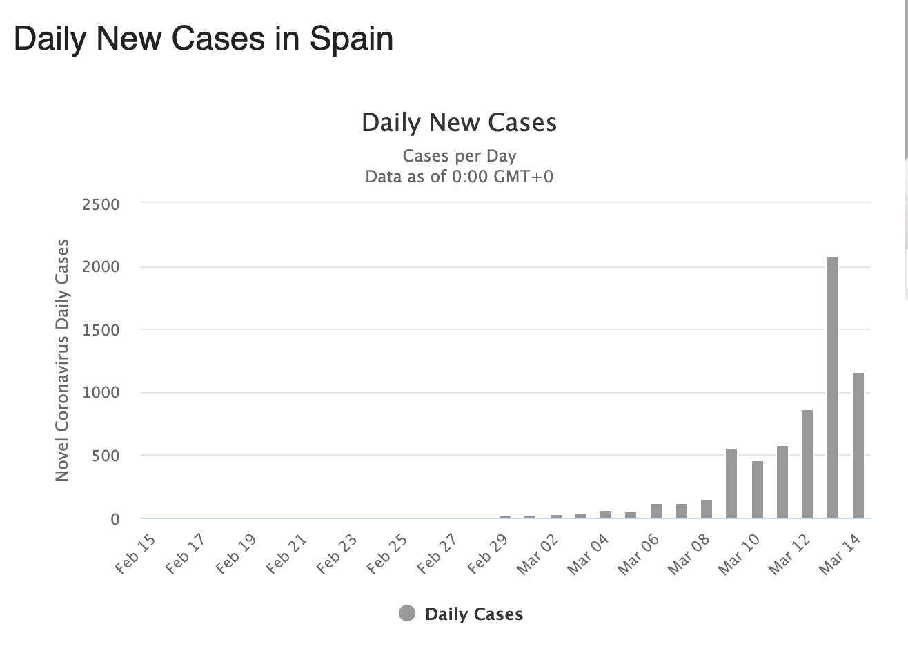 Ser ut som det kan flate ut i Spania, men vil gjerne se noen flere dager med data
