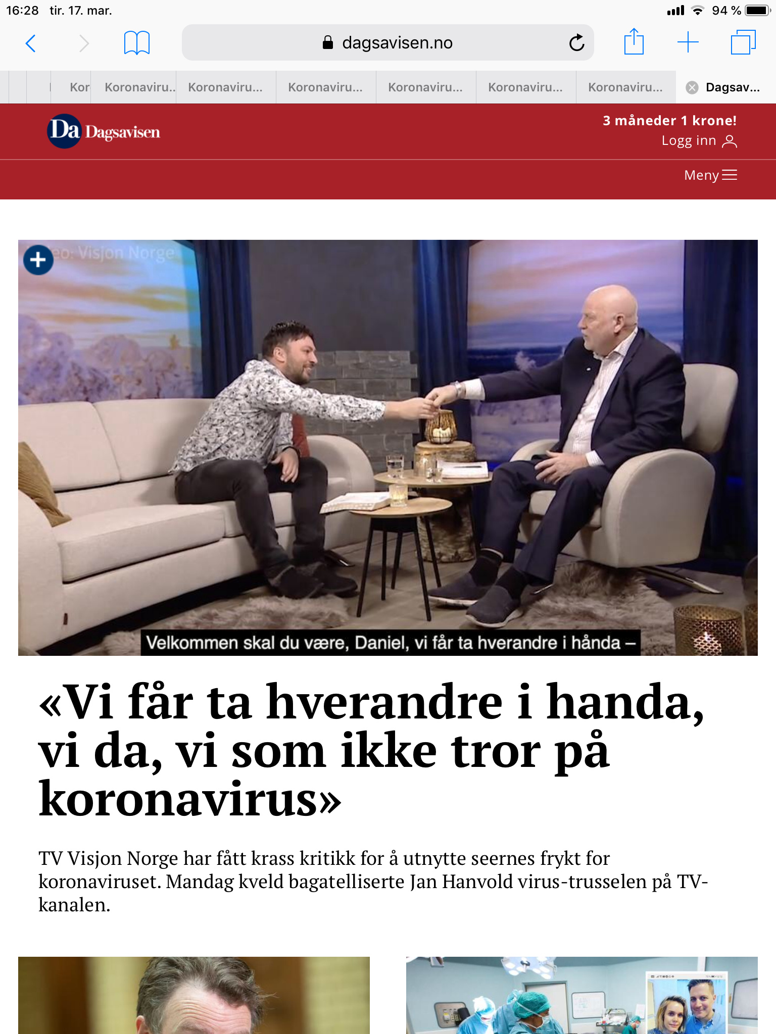 Svenske har vel stengt høgskolene, og redusert noen togavganger. Samt stengt Volvofabrikken. Var få folk, altså en 90 prosent nedgang i handelen, på Nordby i dag.