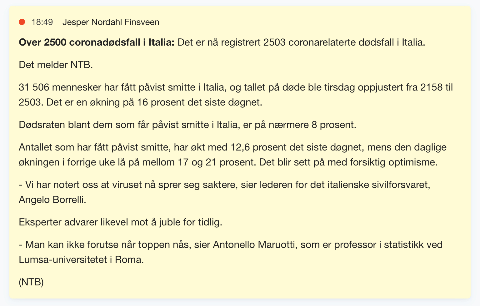 Hvis ikke, kan du gi en grunn til at det er relevant å sammenligne Sverige i dag med Norge for tre uker siden?