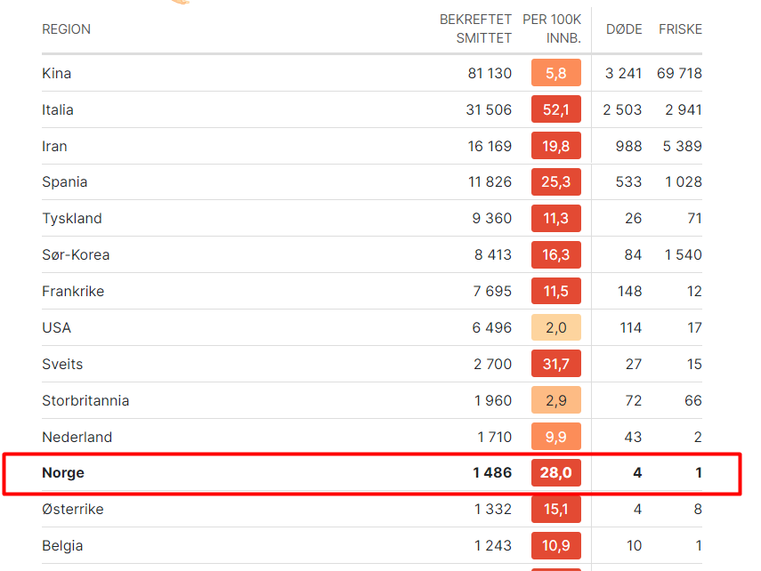 Antatt dødsrate opp til 1% betyr at 99% overlever. Og de fleste som dør har annen sykdom, og/eller høy alder. 90% av de som dør er over 70 år, de fleste med hjerte/lungeproblemer fra tidligere.