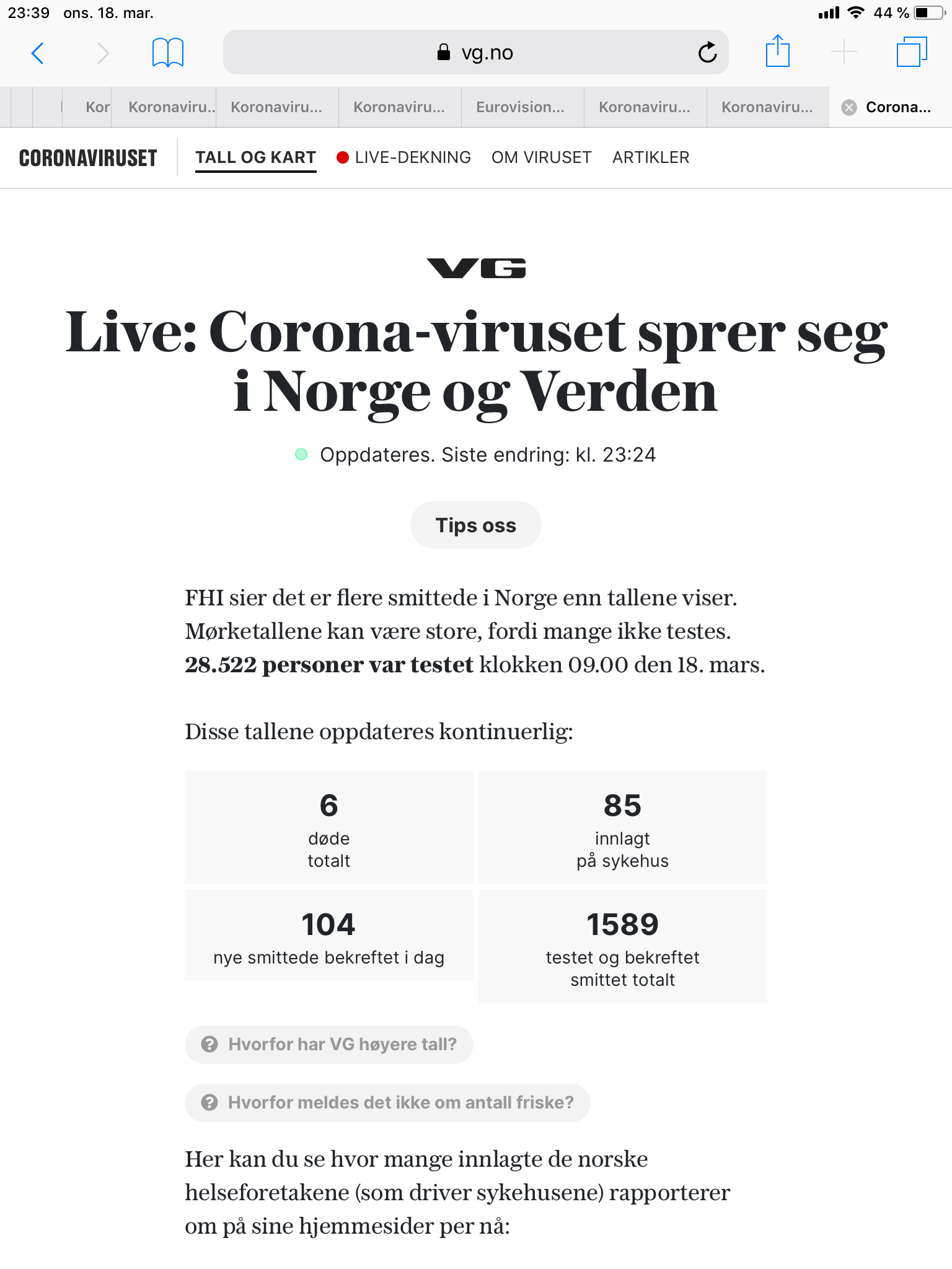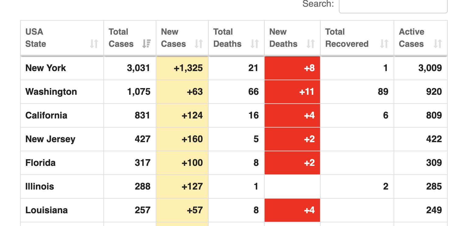 Tror panikken tar USA snart. Stor økning siste døgn. I en populasjon med mye dårlig helse og mange overvektige tror jeg dette kan bli stygt både helsemessig og økonomisk.
