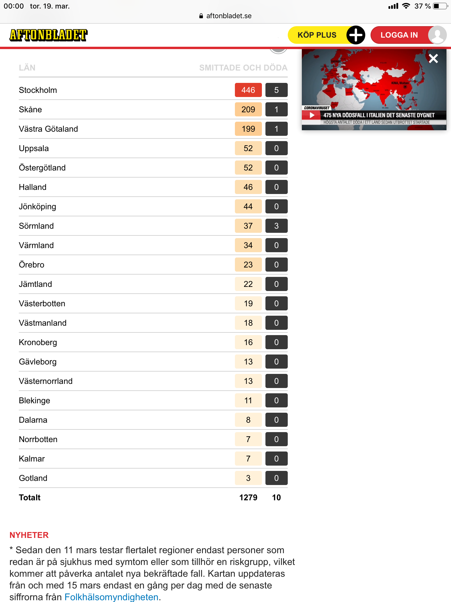 Sverige, oversikt fra Aftonbladet .