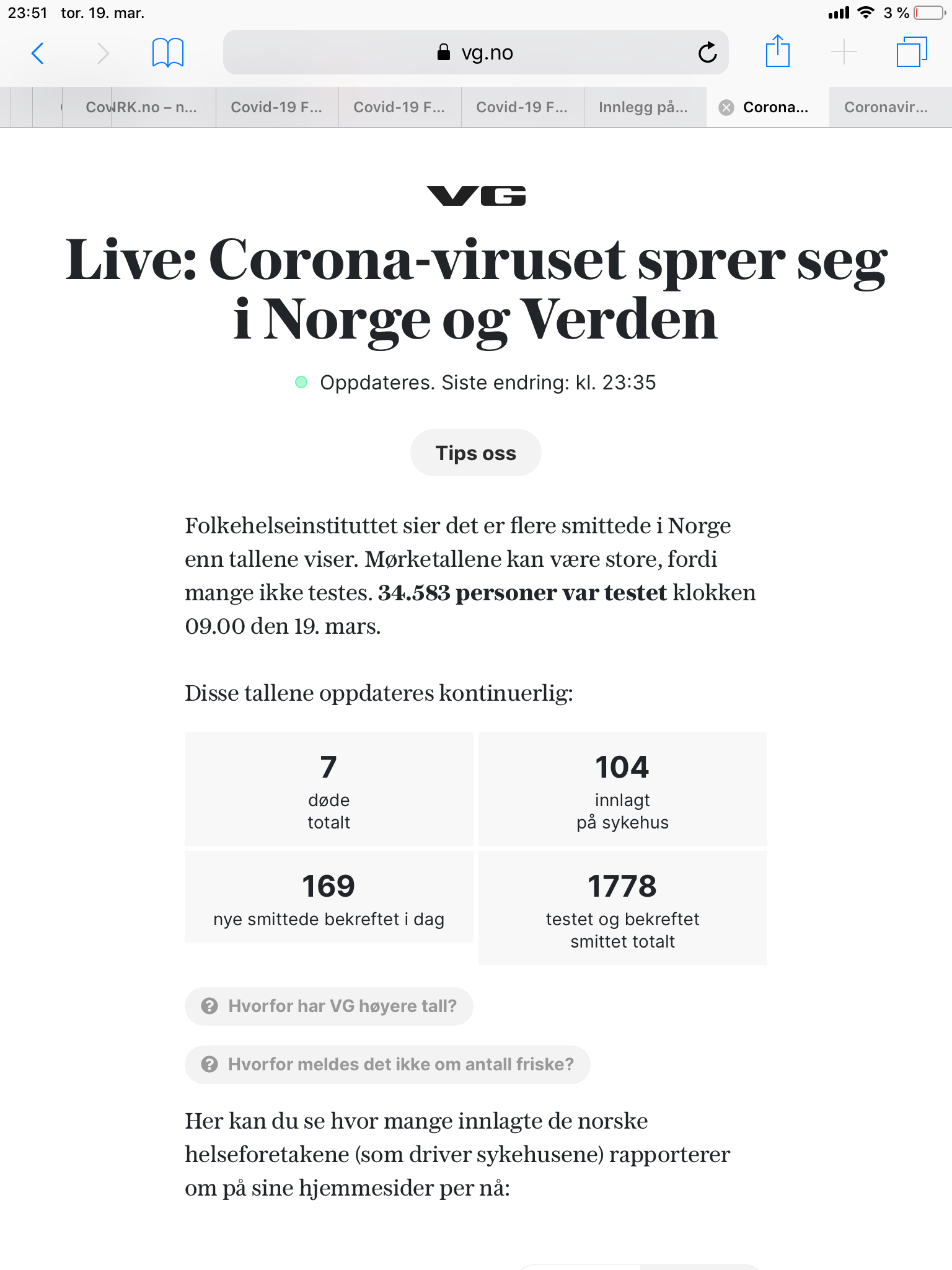 Får vi slike tilstandsraporter i vinterens fororkjølelse /influensa-bølger? Eller: