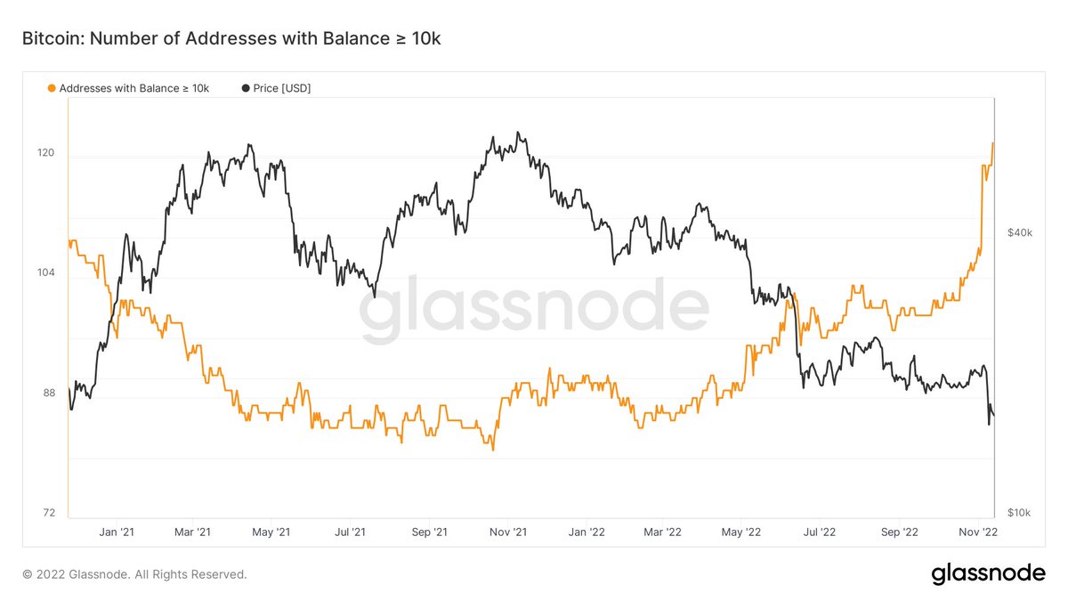Whales are buying while retail is selling. #Bitcoin wallets with more than 10 $BTC are growing.