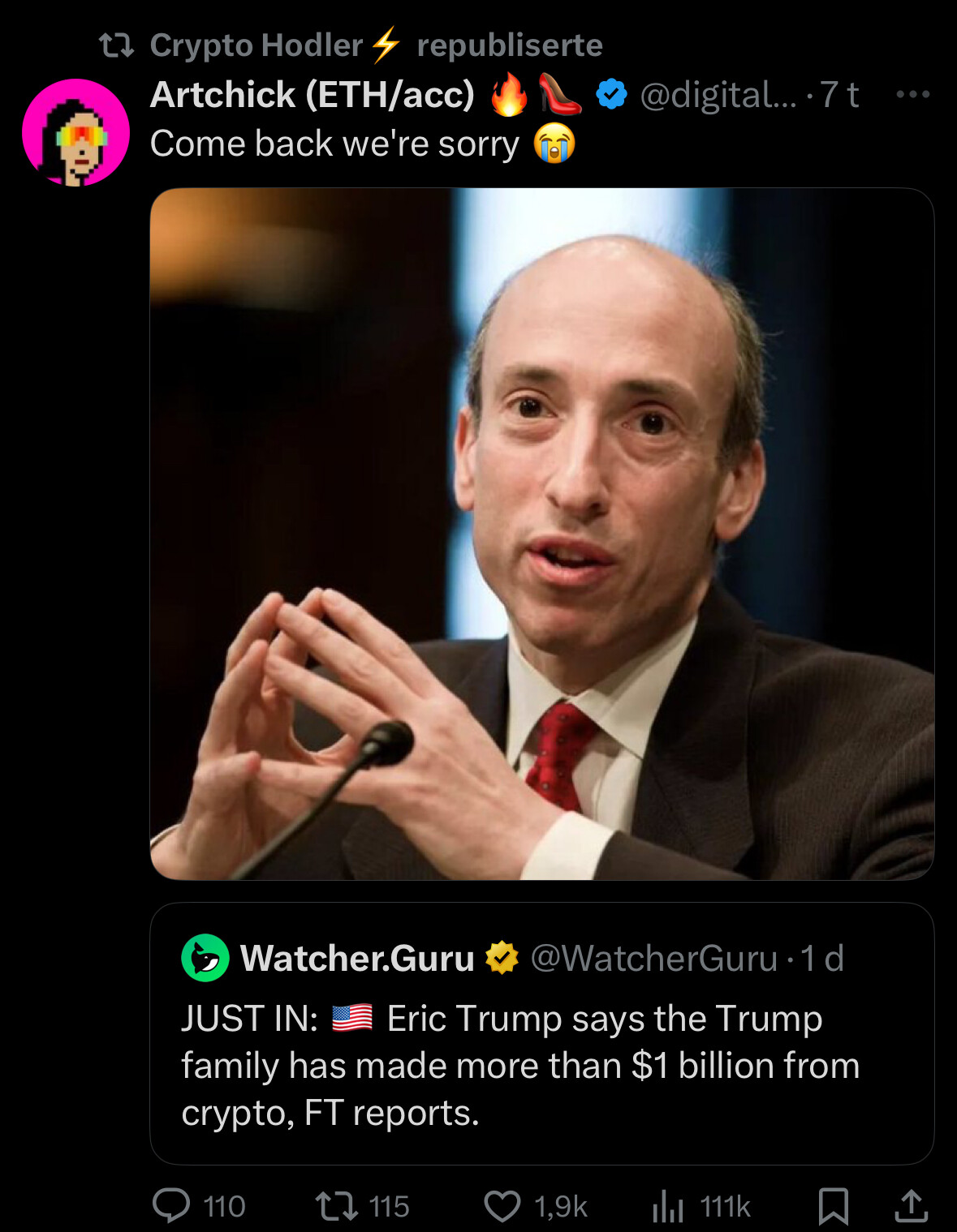 Ikke værst, så nærme etter tidenes kræsj går Eric Trump ut og skryter over hvor mye de tjener på Twittringen til pappa.