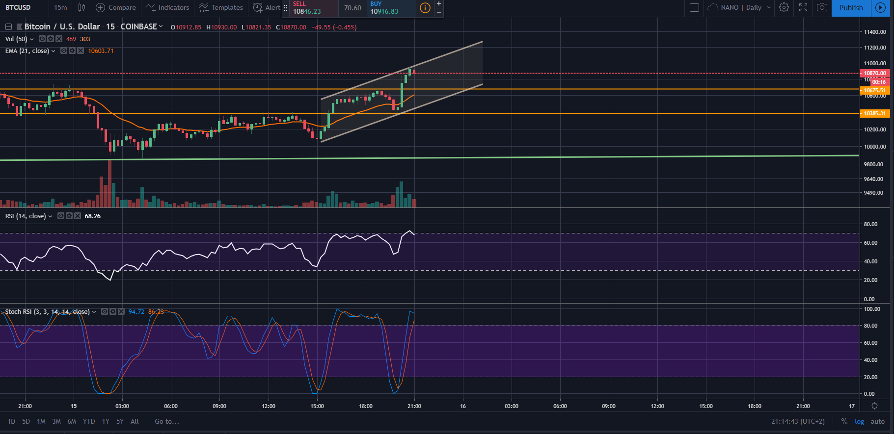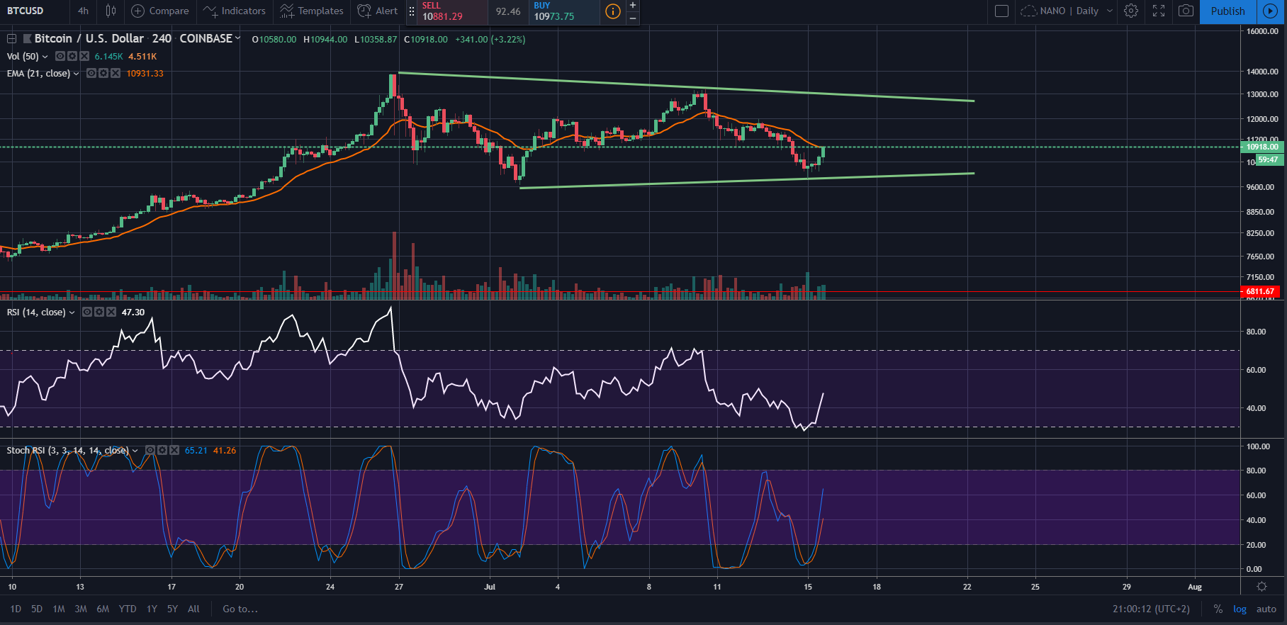 Enig med deg @fish1430 - gikk ut pÄ $10800ish - synes det ser ganske bearish ut, men samtidig sÄ holdt stÞtten i daily i BTCEUR chartet (som jeg trader for Þyeblikket). Tror likevel det fort kan bli brutt og at vi havner under $10k sÄ foretar ikke noen aggressive kjÞp her