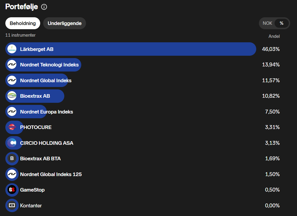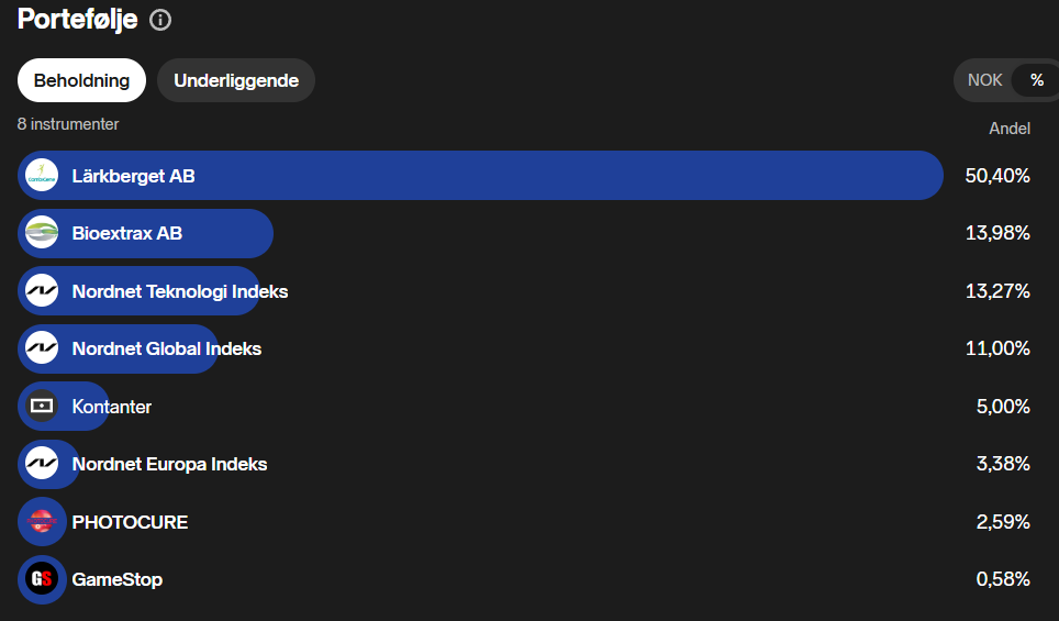Bioextrax er jo også god gammal galskap på steroider. Veldig spennende selskap med enorm oppside, men også veldig stor fallhøyde. Jeg har også her solgt ut omkring 10% av min beholdning samtidig som jeg vurderer selskapet fortløpende. De har en avtale hvor de jobber med en potensiell kontrakt som løper ut en ny måned. Som vanlig ganske binært. Ny avtale gir masse penger, og dårlig nyhet så ramler nok aksjen som en stein. Jeg får se om jeg bare lukker øynene og kjører på, eller om jeg tar til fornuften. Litt gammal moro kan en ha. Kan jo også eventuelt bli en god påminnelse på hvorfor jeg har endret strategi.