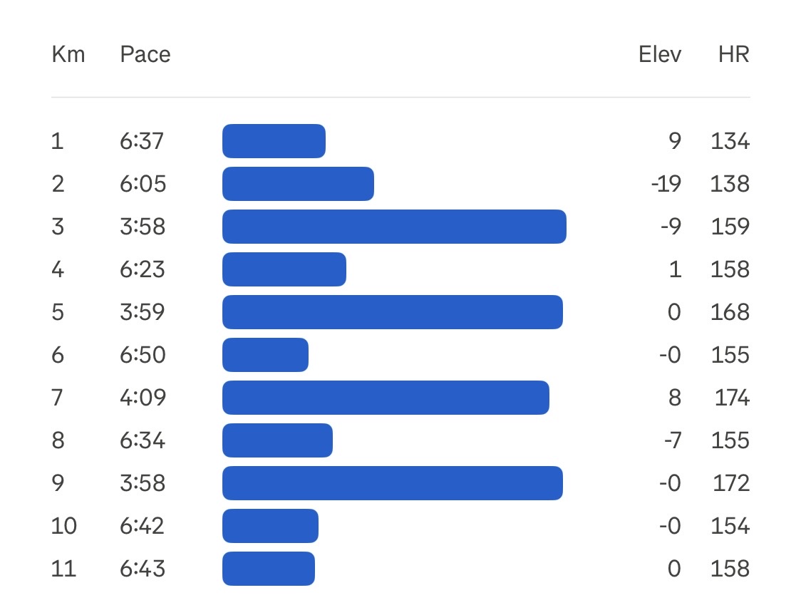 Litt juks å trene i ferien men slapp av jeg skal på fjellet neste uke i stedet. Kontinuerlig intervalltrening 4x1km på gangvei i sludd. Moro å se 3 tallet på tre av dragene, og pulsen holder seg ganske bra (med forbehold om at det er klokke). Jeg merket de 8 høydemeterne på drag 3.