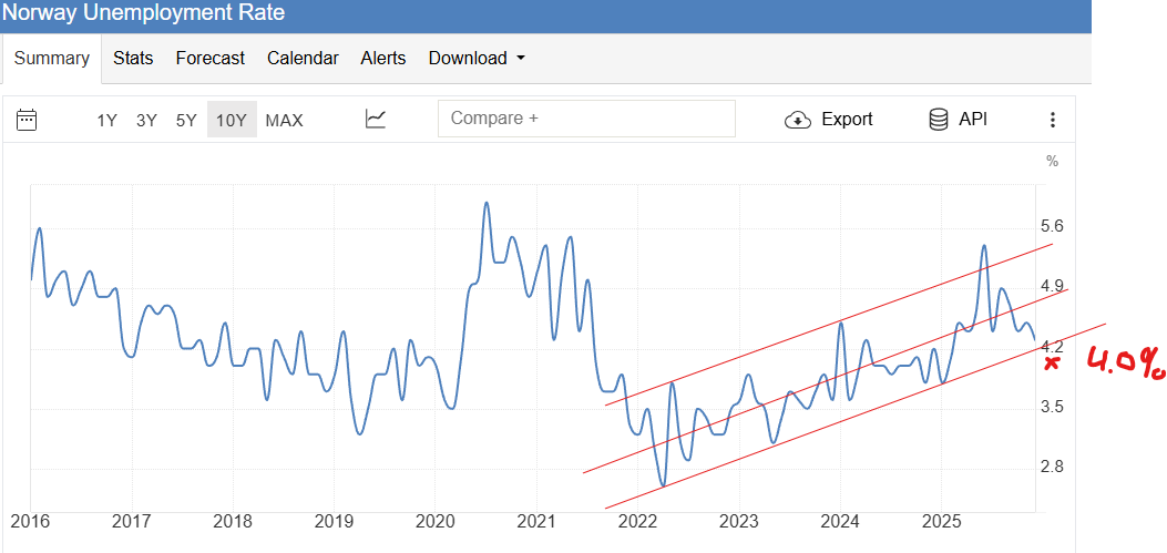 Hvis arbeidsledigheten synker til 4,0%, og kanskje under, så er det et trendskifte som kanskje fordrer en renteøkning