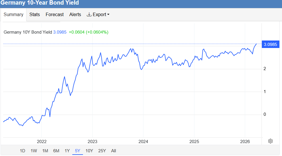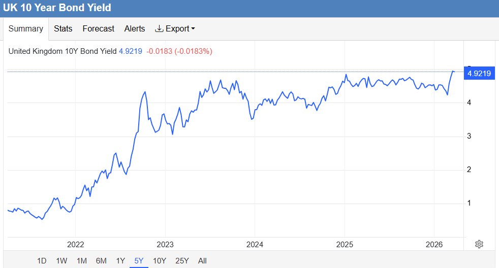 Synes rentene i Europa ser verre ut, feks 10 års renta i UK (i likehet med US så velger jeg 10årsrenta fordi det er der bedrifter typisk låner på investeringer), der renta siden rett før Iran-konflikten har økt med ikke 2 kvartinger, men 3 kvartinger: