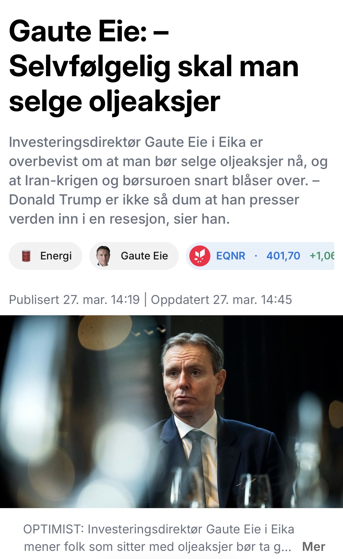 Det er åpenbart at energi-prisene kan kollapse, men det redder ikke økonomien, for da er mye already broken.