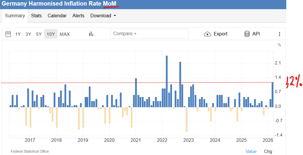 Energiprisene biter godt i Tyskland, i mars måned økte prisene med 1,2%, og vi må tilbake til etterdønninger av Covid-nedstengelser og den vanvittige økning i gasspriser i 2021/22 for å finne høyere måned over måned tall for inflasjonen i Tyskland
