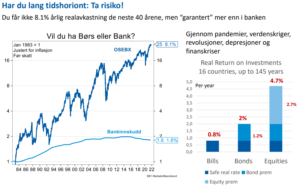 Jo, så jeg har endel cash. Hvis man tar med det som står i banken (ikke på trading konto) så er det ca 20% akkurat nå. 50% av aksjene jeg har er investert i et selskap med en ordrebok på to ganger årlig omsetning og som går med veldig godt overskudd med det som utgangspunkt. Pengene jeg har på børs har jeg i utgangspunktet ikke tenkt å bruke de neste 5 årene.