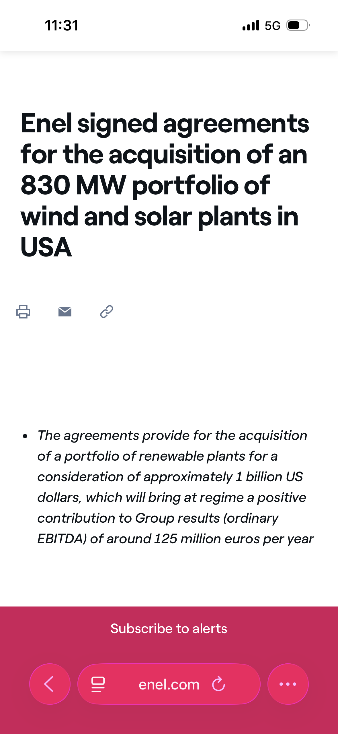 Noe så stoppa meg for å investere større summer på 7 tallet på enel var jo deres store satsing i USA. Litt farget av media og trodde trump effektivt kom til å sette stopper for mye her. Her tok jo jeg grundig feil når jeg ser hva du linker til her og bekrefter jo med denne nyheten hos enel hvor attraktivt det er.