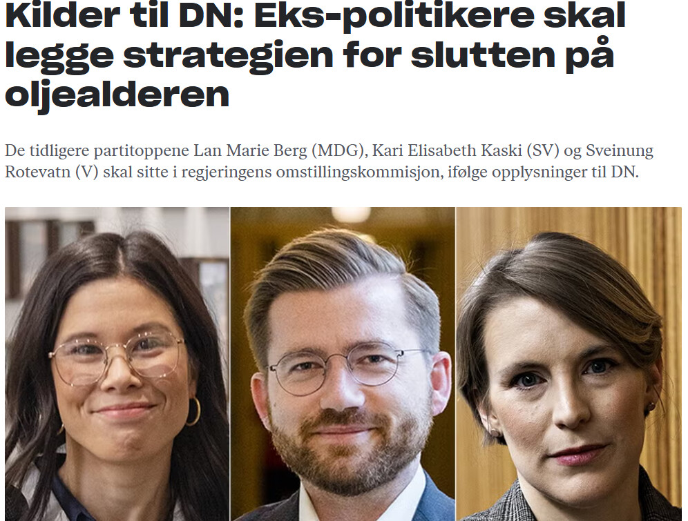 Kilder til DN: Eks-politikere skal legge strategien for slutten på oljealderen | DN