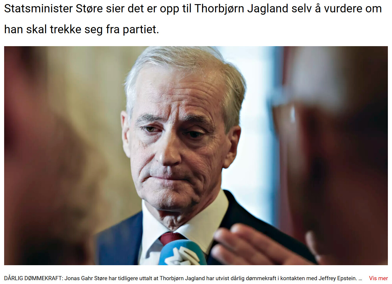 Dårlig dømmekraft smitter i AP. Støre mener en som har dårlig dømmekraft må selv bedømme om han bør trekke seg fra partiet. Kan ikke med fantasien finne på mer bakvendtland tenking