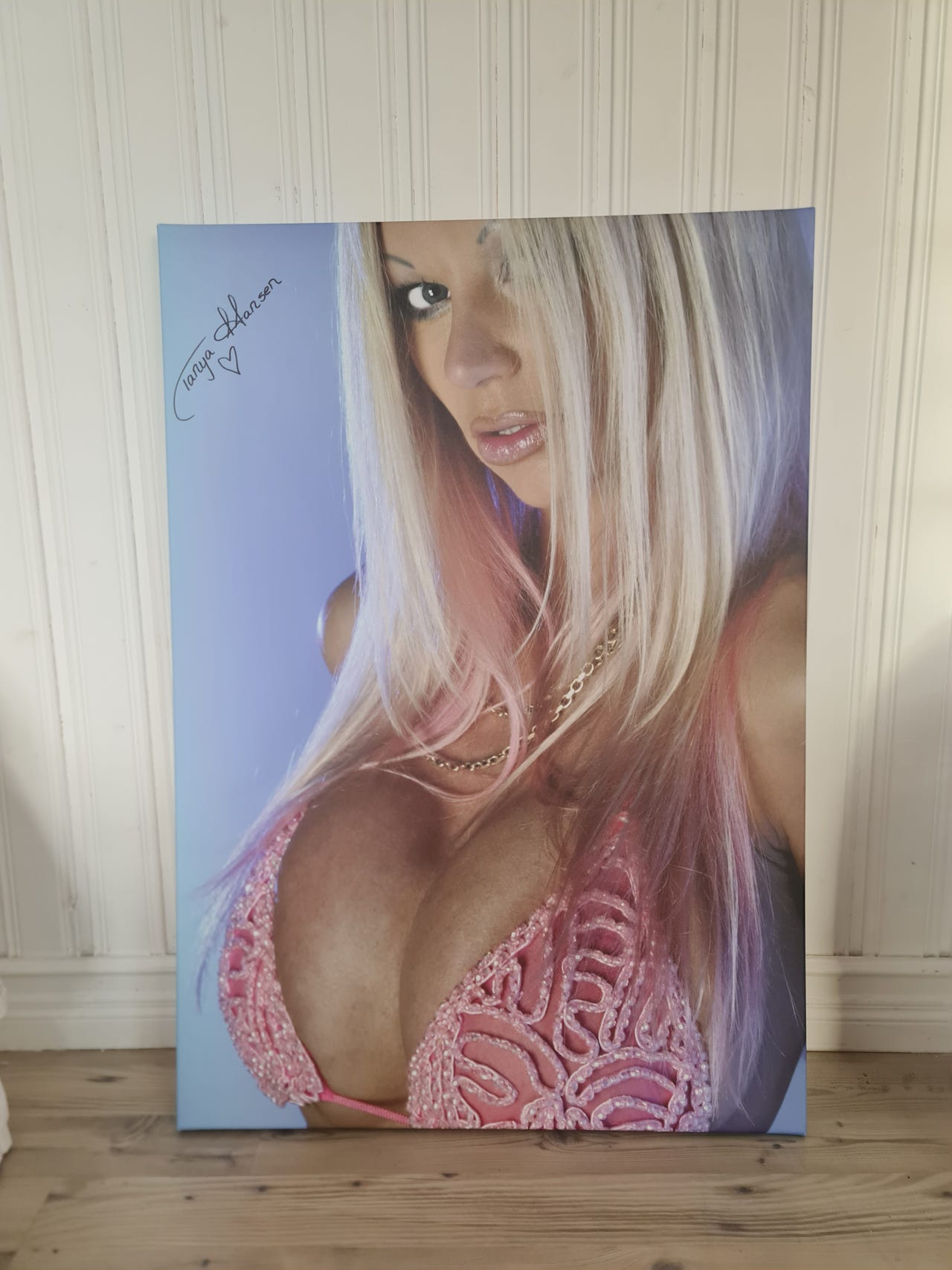 Må være (eks-)mannen hennes ref. navnet, selger ørten signerte postere / whatnot av Tanya Hansen.