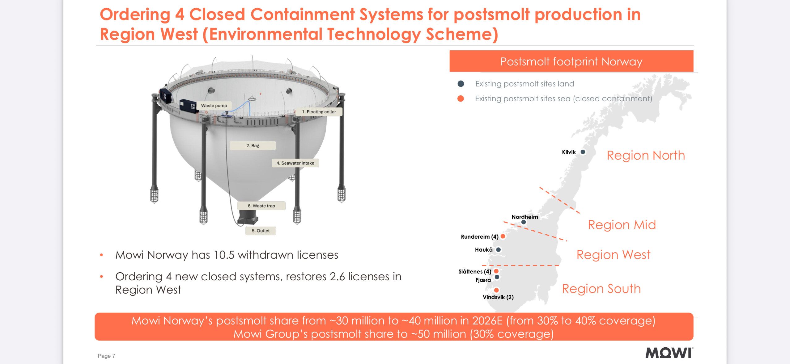 Slide fra dagens Mowi presentasjon. «Ordering 4 Closed Containment Systems…» Noen som kjenner igjen logoen?