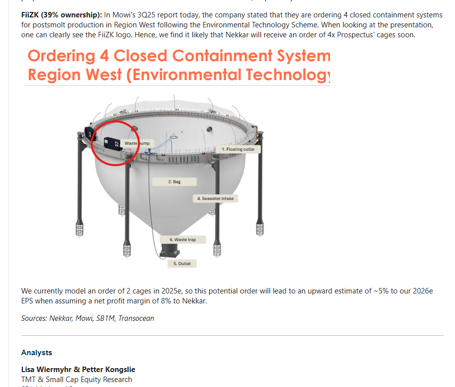 FiiZK har Nekkar fått kjøpt veldig billig via Starfish-forskning og litt cash. Driften der har vært sikret via salg av deler av selskapet. De har fått kontrakt på to lukkede merder og ser nå ut til å få kontrakt på 4 til. Samme kunde trenger 12 til hvis de skal kunne bruke alle lisensene sine (som nå er utilgjengelig pga “rødt trafikklys”. Nekkar eier 39% og har opsjon på å kjøpe seg opp til 100% til markedspris i juni 2026 (?).