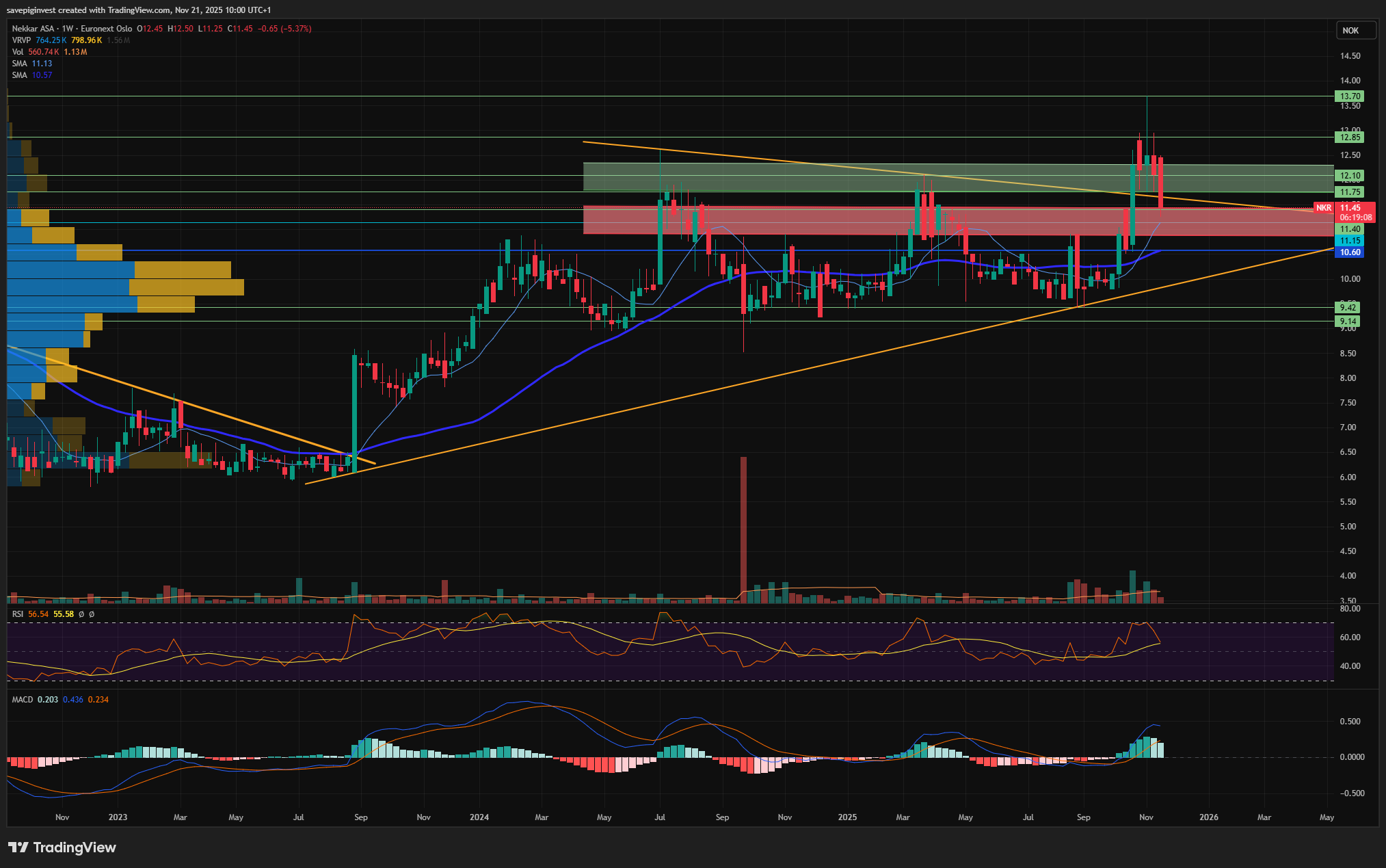 Makro knertet oss ned fra den grønne bullsonen jeg har i mitt chart, men fremdeles oppe over motstandssonen fra før