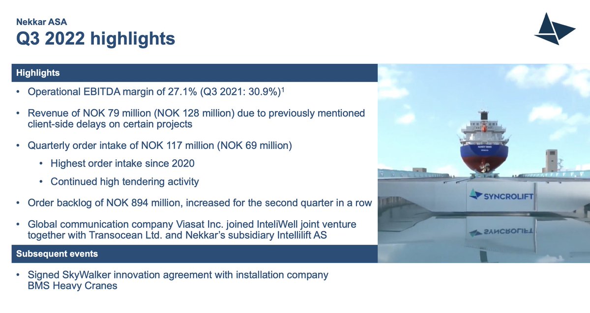 Veldig fin presentasjon. Se på ordreinntak da! Dette er bare på service delen. Dessuten vil sannsynligvis service bli en del av evt nye større kontrakter. Her har de gjort det svært bra. Service inntekter bidrar nå betydelig og vil bidra mer. Nekkar er nå noe helt annet bare pga denne satsningen. Tenk når nybygg kontrakter kommer og vi får visibilitet som indikerer helt andre inntekter og profit. Selskapet har nå bevist stabile marginer over tid,så med økt backlog vil vi sitte veldig fint i det.