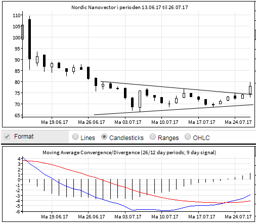 Vi kan jo sammenligne bevegelsene vi hadde sist MACD ga tilsvarende kurs. Likevel enig i at det er en del motstand på vei opp, og når volumet er fraværende såvel som nyheter kan man jo begynne å lure på hva som driver kursen opp 10% annet enn trading.