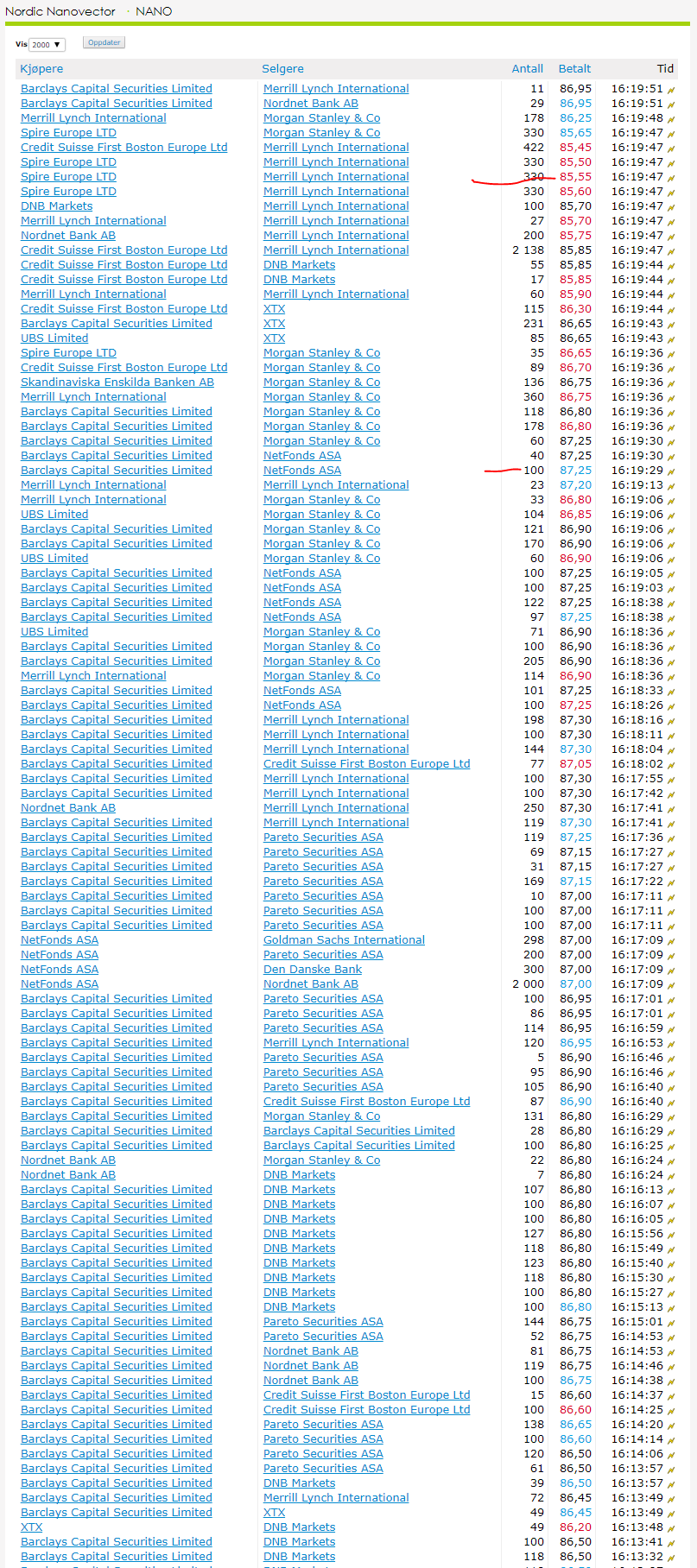 Tynt volum i dag, men vi skal nok opp på 90 tallet igjen før eller siden, og da lempes det av igjen. Folk plukket jo opp på 84/85 i går. Fint spenn det.